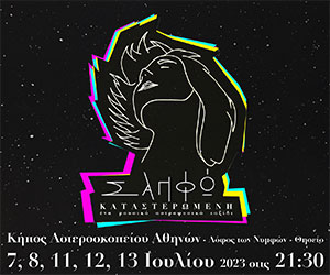 Μια περιπλάνηση στα αστέρια στον Κήπο του Αστεροσκοπείου Αθηνών, με οδηγό τη Σαπφώ σε νέα μετάφραση του Παντελή Μπουκάλα και πρωτότυπη μουσική του Θοδωρή Οικονόμου.