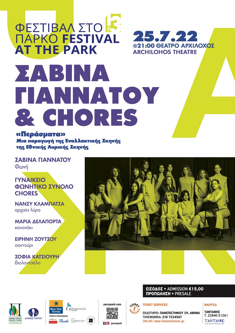 Η Σαβίνα Γιαννάτου και το γυναικείο φωνητικό σύνολο chόrεs σε καλλιτεχνική διεύθυνση Μαρίνας Σάττι συμπράττουν σε ένα πρόγραμμα με τίτλο Περάσματα, που συνδυάζει την παράδοση, τη σύγχρονη μουσική δημιουργία και τον αυτοσχεδιασμό σε αξεδιάλυτο σύνολο, με βασικό όχημα την ανθρώπινη φωνή. Το πρόγραμμα επιμελήθηκε ο Κορνήλιος Σελαμσής.