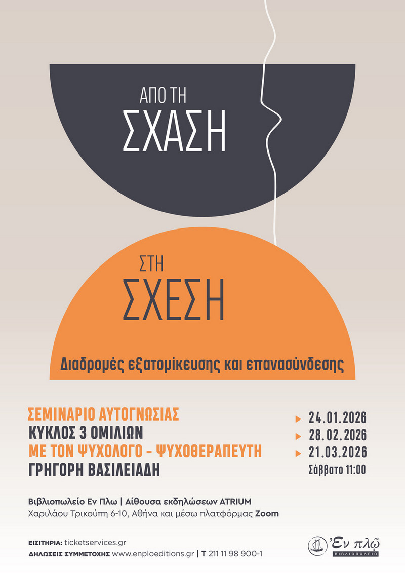 3 συναντήσεις στο βιβλιοπωλείο Εν Πλω ή μέσω της πλατφόρμας Zoom.