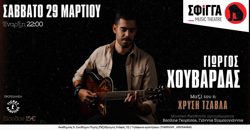 Το Σάββατο 29 Μαρτίου ο Γιώργος Χουβαρδάς επιστρέφει στη μουσική σκηνή Σφίγγα με ένα πολύ ιδιαίτερο και ανανεωμένο μουσικό πρόγραμμα γεμάτο μνήμες και εικόνες απ' το παρελθόν, φερμένες στο σήμερα μέσα από τις ανεπανάληπτα εκφραστικές ερμηνείες του, συνοδευόμενος από την εξαιρετική Χρυσή Τζάβλα και μια ομάδα δεξιοτεχνών μουσικών.