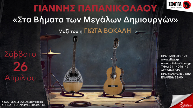 Μαζί με την εξαιρετική ηθοποιό και ερμηνεύτρια Γιώτα Βόκαλη θα μας ταξιδέψουν στις μουσικές διαδρομές του αυθεντικού ελληνικού τραγουδιού, ακολουθώντας τα βήματα των μεγάλων μας δημιουργών και την πλούσια μουσική παρακαταθήκη που μας χάρισαν.