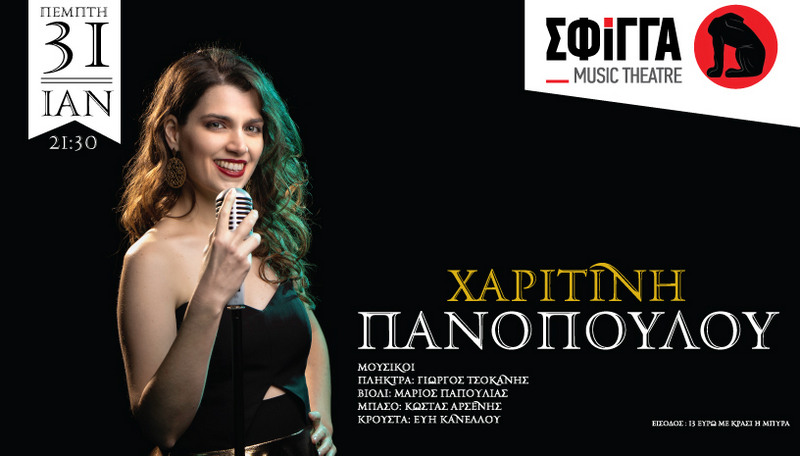 Η Χαριτίνη Πανοπούλου μας υποδέχεται την Πέμπτη 31 Ιανουαρίου στη μουσική σκηνή Σφίγγα με ένα μουσικό πρόγραμμα γεμάτο ζωντάνια και ρυθμό!