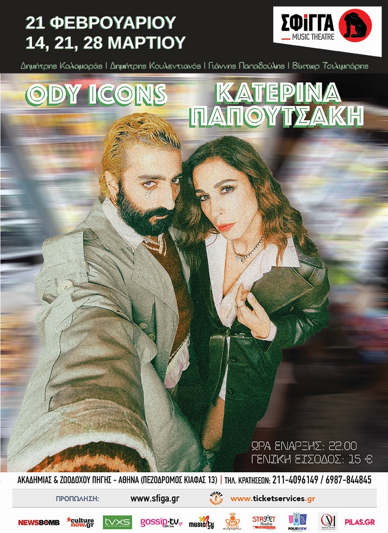 Η Κατερίνα Παπουτσάκη υποδέχεται φέτος στη Μουσική Σκηνή Σφίγγα, τον Ody icons και στήνουν μαζί, για τις Παρασκευές 21 Φεβρουαρίου και 14, 21, 28 Μαρτίου, μια μουσική συνάντηση που θα ζεστάνει την καρδιά του χειμώνα και θα ανεβάσει τις θερμοκρασίες.