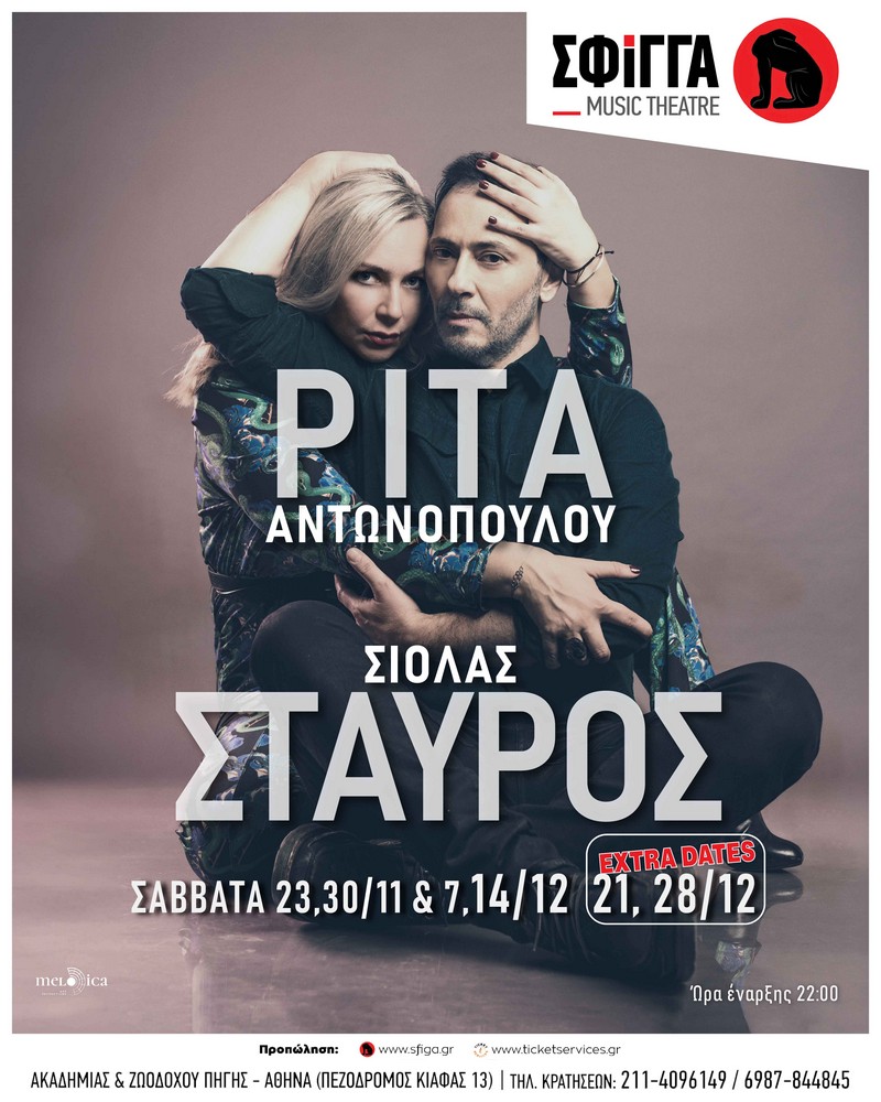 Μετά από ένα μήνα άκρως πετυχημένων εμφανίσεων στη Σφίγγα, η Ρίτα Αντωνοπούλου με τον Σταύρο Σιόλα θα συνεχίσουν για ακόμα δύο παραστάσεις, τα Σάββατα 21 και 28 Δεκεμβρίου.