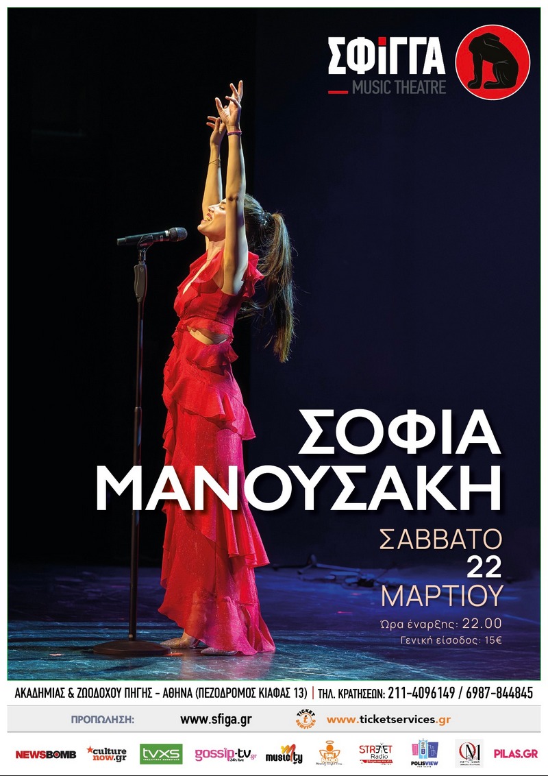 Μετά το πρόσφατο εντυπωσιακό sold out της εμφάνισης στο Παλλάς, η Σοφία Μανουσάκη -η «αποκάλυψη μεγατόνων» σύμφωνα με τον Μίκη Θεοδωράκη όταν την άκουσε πρώτη φορά - επιστρέφει στη Σφίγγα, για δυο εμφανίσεις τα Σάββατα 8 και 22 Μαρτίου.