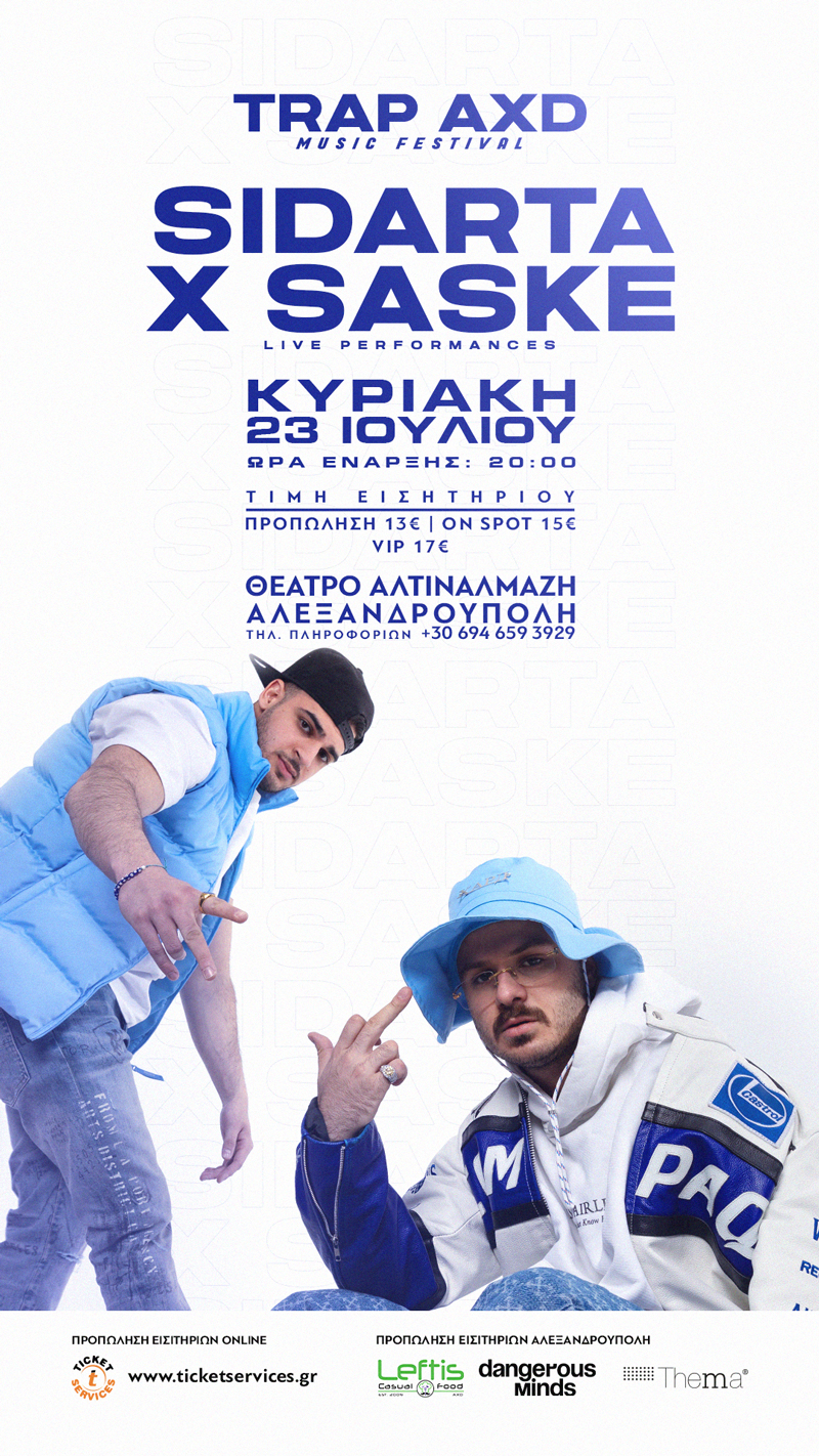 Το Trap music festival επιστρέφει και αυτό το καλοκαίρι την Κυριακή 23 Ιουλίου στο θέατρο Αλτιναλμαζη. Μαζί μας θα είναι ο Sidarta και ο Saske για μια ανεπανάληπτη συναυλία περιορισμένος αριθμός εισιτηρίων σε επιλεγμένα καταστήματα και online στο ticket services.