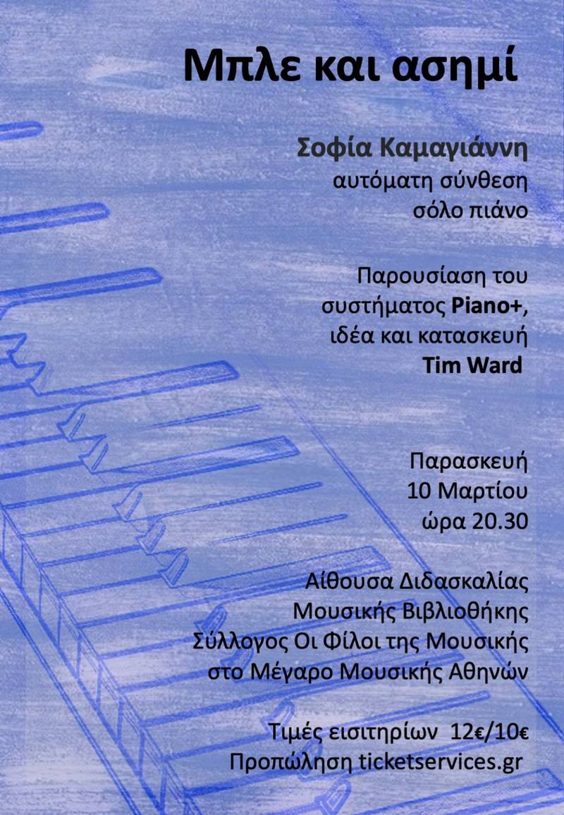 Η συνθέτρια και πιανίστα Σοφία Καμαγιάννη για άλλη μια φορά σε μία περφόρμανς αυτόματης σύνθεσης. Μετά την πολύ επιτυχημένη συναυλία που πραγματοποιήθηκε τον Φεβρουάριο, παρουσιάζει εκ νέου αυτή την ανατρεπτική πιανιστική περφόρμανς.