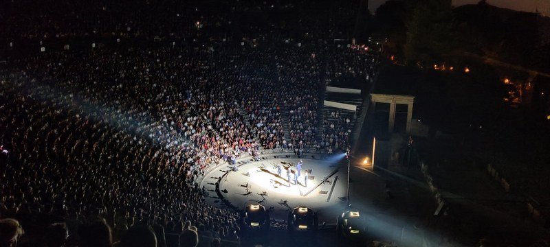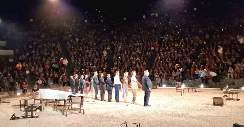 Δείτε τις εντυπωσιακές εικόνες και το video https://youtu.be/dCguB7NCPCg από το ομορφότερο θέατρο του κόσμου κατάμεστο, με το κοινό να καταχειροκροτεί τους πρωταγωνιστές της παράτασης Έλλη Τρίγγου, Βασίλη Μπισμπίκη, Ιεροκλή Μιχαηλίδη, Γιώργο Παπαγεωργίου, Δανάη Μιχαλάκη, Χρήστο Σαπουντζή, Κώστα Κορωναίο, Στρατή Χατζησταματίου, Μαρίνα Αργυρίδου, Edgen Lame, Γιάννη Μαστρογιάννη και Περικλή Σιούντα.