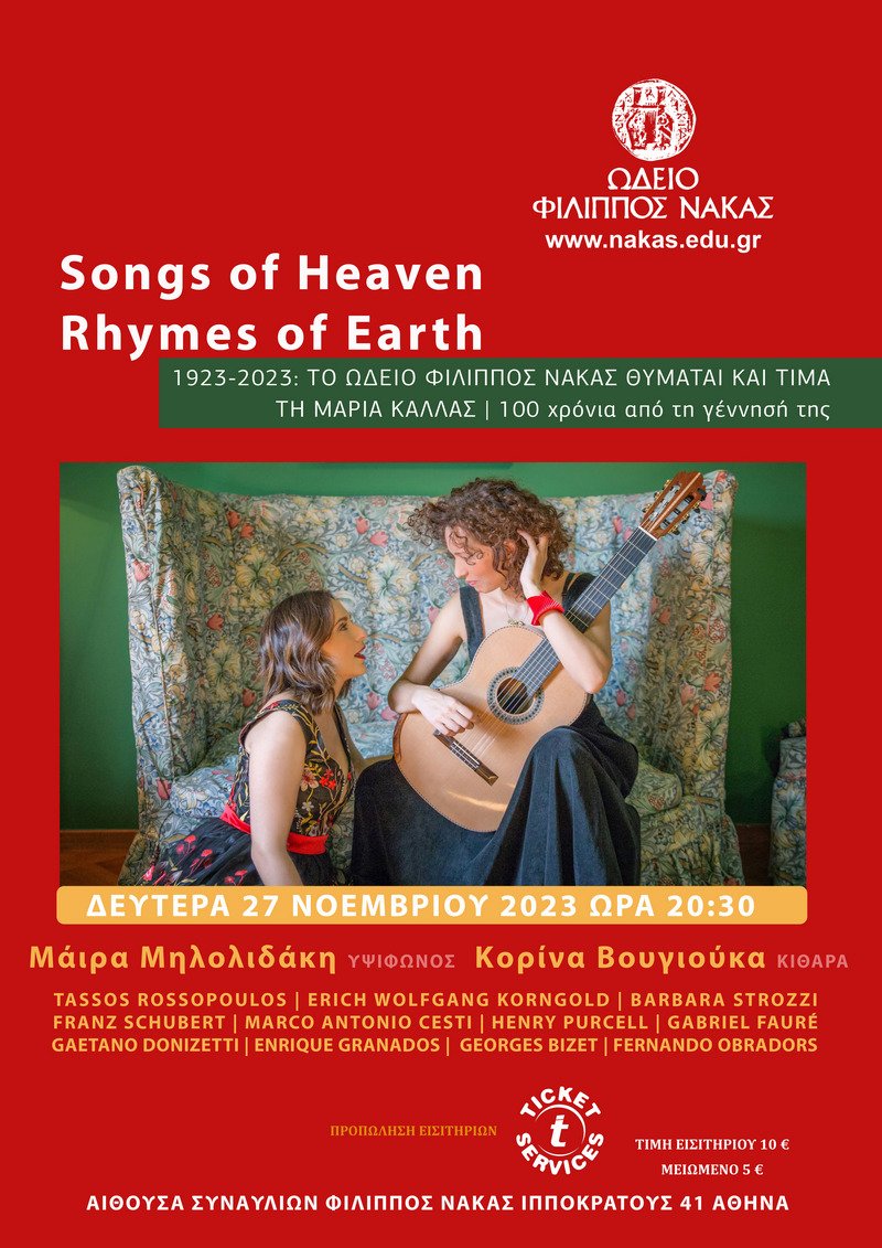 Οι διακεκριμένες σολίστ Μάιρα Μηλολιδάκη (υψίφωνος) και Κορίνα Βουγιούκα (κιθάρα), με αφορμή την επέτειο των 100 χρόνων από τη γέννηση της Μαρίας Κάλλας, παρουσιάζουν ένα πρόγραμμα με ιδιαίτερα δημοφιλείς επιλογές του ρεπερτορίου, καταθέτοντας τη δική τους ξεχωριστή ερμηνεία.