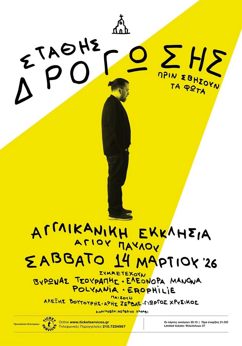 Ο Στάθης Δρογώσης, ύστερα από τα επιτυχημένα χειμωνιάτικα live στην Αθήνα, έρχεται για πρώτη φορά στην Αγγλικανική Εκκλησία του Αγίου Παύλου, παρουσιάζοντας τα τραγούδια του με ένα ιδιαίτερο σύνολο εγχόρδων.