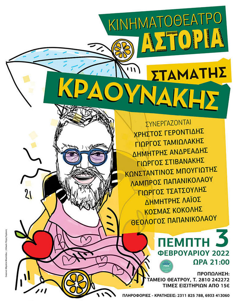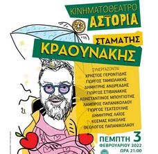 Ο Σταμάτης Κραουνάκης και η πρώτης γραμμής ομάδα του, με την παράσταση που ήδη έχει αγαπήσει η Αθήνα, δίνουν «Ραντεβού στο ΑΣΤΟΡΙΑ» την ημέρα ΠΕΜΠΤΗ 3 Φεβρουαρίου στις 21:00 για να προσφέρουν απλόχερα αισθήματα, τρυφερότητα, αγάπες και πανέμορφα λαϊκά συλλογικής συνδεσιμότητας δεκαετιών.