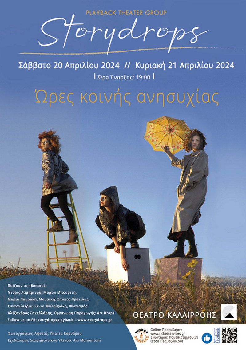 Η ομάδα θεάτρου playback "storydrops" σας καλεί σε μια ξεχωριστή παράσταση που κάνει χώρο στο απροσδόκητο και χτίζεται στο εδώ και τώρα από τις δικές σας ιστορίες.