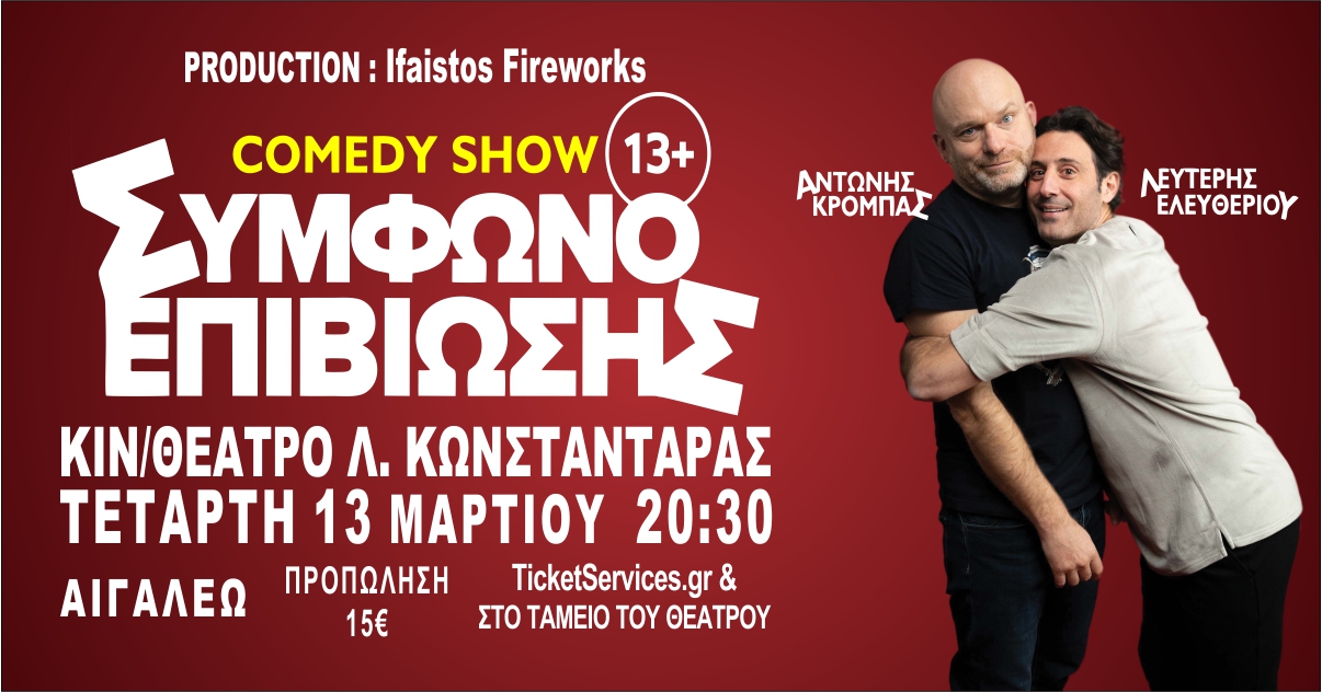 Κρόμπας και Ελευθερίου έρχονται για πρώτη φορά στο Αιγάλεω και υπογράφουν "Σύμφωνο Επιβίωσης" σε ένα καταιγιστικό 2ωρο γέλιου...