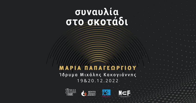 Τα «Σπουδαία Events» συνεχίζουν να ονειρεύονται έναν κόσμο πιο φωτεινό με οδηγό την τέχνη και διοργανώνουν ένα μουσικό διήμερο στο σκοτάδι με την υπέροχη φωνή της Μαρίας Παπαγεωργίου για την υποστήριξη των παιδιών, μέσω των οργανισμών «Κέντρο Παιδιού και Εφήβου» και «Μέριμνα».