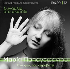 Σε ακολουθία των sold out συναυλιών στο σκοτάδι με τον Αλκίνοο Ιωαννίδη και την Νατάσσα Μποφίλιου, τα «Σπουδαία Events» καλούν την Μαρία Παπαγεωργίου, την Δευτέρα 19 και Τρίτη 20 Δεκεμβρίου στο Ίδρυμα Μιχάλης Κακογιάννης για δύο βραδιές σύνδεσης και μουσικής μαγείας.