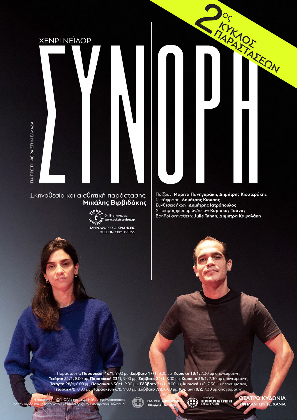 Η παράσταση «ΣΥΝΟΡΑ» του Χένρι Νέιλορ πραγματοποιείται υπό την αιγίδα και με την οικονομική υποστήριξη του Υπουργείου Πολιτισμού