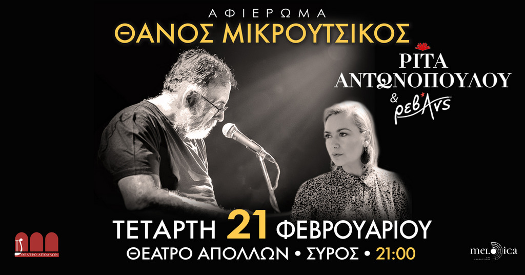 Ο Θάνος Μικρούτσικος είναι διαχρονικός. Το έργο του μιλάει με τον ίδιο έντονο τρόπο από γενιά σε γενιά και την σημαδεύει σε βαθμό που κάποιος μπορεί να το αναγάγει και σε κάτι μαγικό. Έχοντας μαθητεύσει δίπλα του από το 2006 ως το τέλος, η Ρίτα Αντωνοπούλου αποφασίζει για πρώτη φορά να παρουσιάσει ένα ολοκληρωμένο αφιέρωμα στον αξέχαστο δημιουργό χωρίς τον ίδιο επί σκηνής. Όπως λέει η ίδια ο ένας λόγος είναι ότι τώρα νιώθει έτοιμη να το κάνει και ο δεύτερος η μουσική σύμπραξη με τους εξαιρετικούς Ρεβάνς. Με τεράστια αγάπη στο έργο του εδώ και χρόνια, οι Ρεβάνς δίνουν το δικό τους στίγμα σε εμβληματικά τραγούδια κι η συνεργασία με τη Ρίτα Αντωνοπούλου δημιουργεί ένα εκρηκτικό αποτέλεσμα που επιχειρεί και έχει σαν στόχο να νιώσουμε όλοι ξανά τον Θάνο κοντά μας όπως τότε.