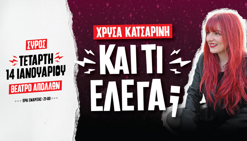 Μετά από το sold out του Μαρτίου του 2023, η Χρύσα Κατσαρίνη επιστρέφει στη Σύρο και παρουσιάζει τη νέα της stand up comedy παράσταση "ΚΑΙ ΤΙ ΕΛΕΓΑ;". Ολόκληρη η παράσταση αφορά ένα και μόνο βράδυ - αυτό της 6ης Μαΐου του 2012. Ένα καθοριστικό βράδυ.