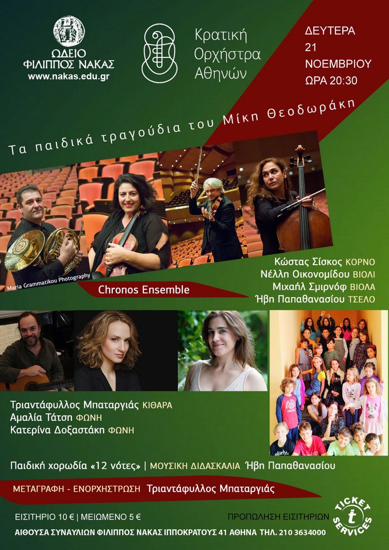 Μεταγραφή - ενορχήστρωση τραγουδιών του Μίκη Θεοδωράκη για το Chronos Ensemble, κλασική κιθάρα, δύο γυναικείες φωνές και παιδική χορωδία από τον Τριαντάφυλλο Μπαταργιά.