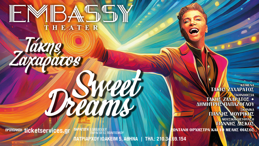 Μπρίο, μαεστρία, ταλέντο, καυστική σάτιρα, τραγούδια και πολύ γέλιο στο SWEET DREAMS ... από κοντά! , μια πολύ επιτυχημένη παράσταση με συνεχόμενα sold out και συνεχείς παρατάσεις που κέρδισε την καρδιά χιλιάδων θεατών στη Θεσσαλονίκη και έρχεται για να κατακτήσει και τους Αθηναίους.