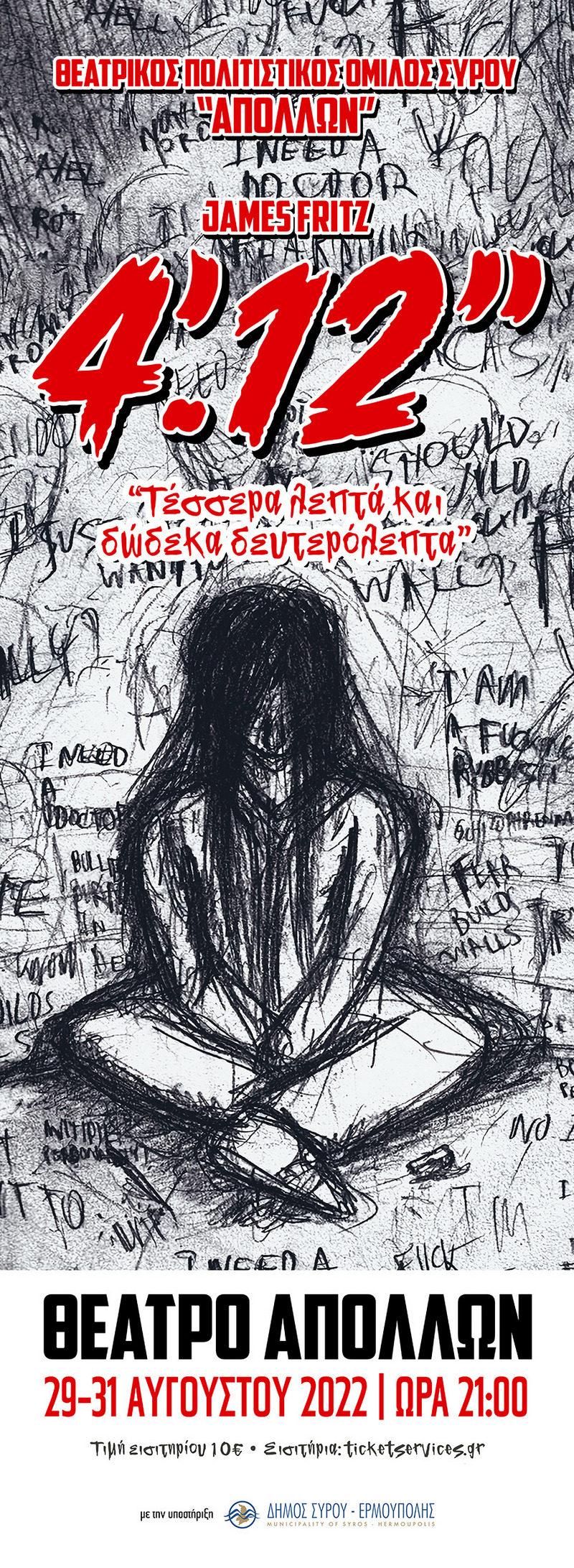 Ο Τζέιμς Φριτς (James Fritz) ανήκει στην νεότερη γενιά των Άγγλων θεατρικών συγγραφέων. Το "4 λεπτά και 12 δευτερόλεπτα" είναι το πρώτο ολοκληρωμένο θεατρικό έργο που έγραψε. Ένα προκλητικό κι επίκαιρο έργο για τις ανθρώπινες σχέσεις στην εποχή της κυριαρχίας του διαδικτύου. Η σύγχρονη τεχνολογία, τα smart phones, τα Μέσα Κοινωνικής Δικτύωσης δημιουργούν ένα νέο επισφαλές περιβάλλον εντός του οποίου τίποτε δεν πεθαίνει παρά μόνο η υπόληψη των ατόμων. Το έργο έκανε πρεμιέρα στο θέατρο Hampstead το 2014 και προτάθηκε για ένα από τα βραβεία Olivier. Την ίδια χρονιά απέσπασε το βραβείο του Συλλόγου Θεατρικών Κριτικών του Λονδίνου. Στην Ελλάδα ανέβηκε για πρώτη φορά το 2016 στο θέατρο Κυδωνία σε σκηνοθεσία Μιχάλη Βιρβιδάκη.