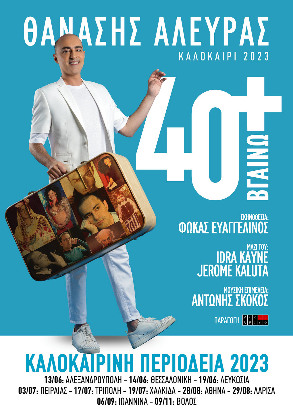 A big birthday party that Thanasis Alevras planned to throw when he turned 40 but, due to the virus, was postponed every year! However, this year, the time has finally come for him to fulfill his dream. Of course, he is now 43, but his heart couldn't bear to change the title. As he says, "If I wrote 43+ I'm Going, it would sound like a shoe size. Besides, my friend Antonis Thysiadis had already written the title track of the opening, and it was composed by Nikos Mertzanos. So I decided to make the title '40plus I'm Going.' It's an autobiographical journey through personal stories that also pays tribute to the famous '80s generation."