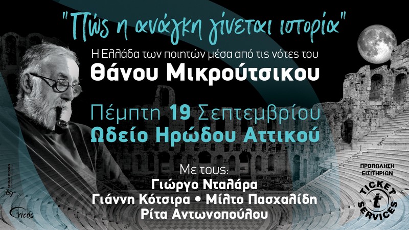 Giorgos Dalaras, Giannis Kotsiras, Miltos Paschalidis, and Rita Antonopoulou will sing - under the supervision of his closest collaborator, Thymios Papadopoulos - his greatest hits: romantic, lyrical, folk, and political songs. Songs signed by Thanos Mikroutsikos that accompanied three generations and "sealed" an entire era.