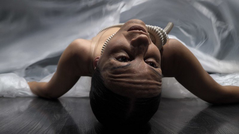 Τυλιγμένη με έναν ομφάλιο λώρο 30 μέτρων, η ερμηνεύτρια γεννιέται επί σκηνής μέσα από έναν αμνιακό σάκο και ξεκινά ένα συμβολικό ταξίδι ζωής. Η εξερεύνηση του κόσμου, η σύγκρουση, η ματαίωση και τελικά η συμφιλίωση αποτυπώνονται μέσα από δυνατές σωματικές εικόνες που αποκαλύπτουν την ουσία της ανθρώπινης ύπαρξης.