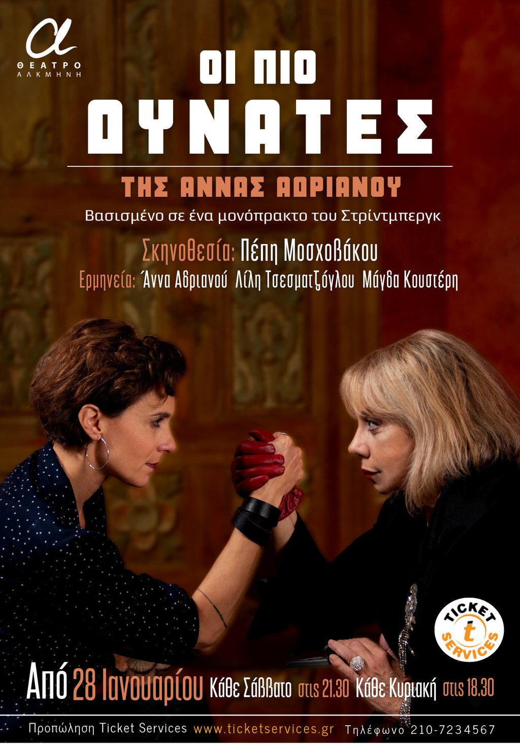 ΟΙ ΠΙΟ ΔΥΝΑΤΕΣ της Άννας Αδριανού ανεβαίνουν φέτος στην σκηνή του ΘΕΑΤΡΟΥ ΑΛΚΜΗΝΗ σε νέα δυναμική εκδοχή η οποία έχει εμπλουτιστεί με επιπλέον σκηνές και χαρακτηριστικά βίντεο.