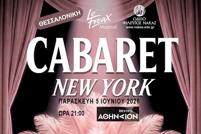 Το Ωδείο Φίλιππος Νάκας και η ομάδα μιούζικαλ LeFreaX παρουσιάζουν την Παρασκευή 5 Ιουνίου, στις 21:00, στο Θέατρο Αθήναιον στη Θεσσαλονίκη το:«Cabaret New York»