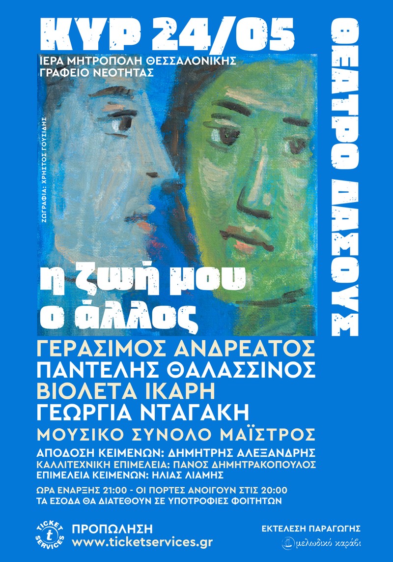 Η Ιερά Μητρόπολη Θεσσαλονίκης και το Γραφείο Νεότητας παρουσιάζουν την Κυριακή 24 Μαΐου στις 9:00 μ.μ., στο Θέατρο Δάσους, την καλλιτεχνική συναυλία με τίτλο «Η ζωή μου, ο άλλος».