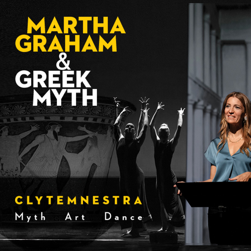The performance integrates live dance performances into an informative talk. Dr. Nina Papathanasopoulou, Professor of Classical Studies at College Year in Athens (Ph.D., Columbia University of New York), delivers an exciting and accessible talk about Graham's technique, vision, and movement vocabulary. Her presentation focuses on the myth of Clytemnestra and Agamemnon. She discusses how Graham used the dance stage to reinterpret Greek myth and to portray the Greek heroes and their intense emotions - anger, grief, jealousy, fear, and vengefulness.