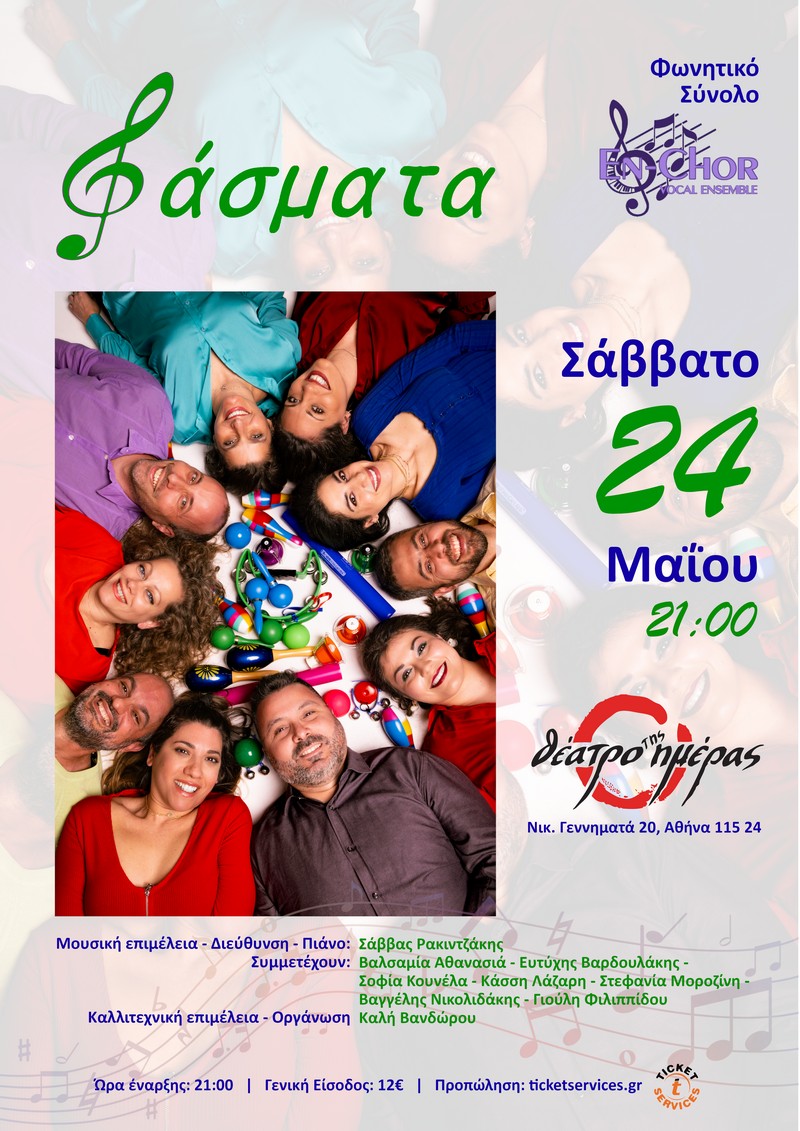 Με ένα διαφορετικό «Φάσμα Φασμάτων και χρωμάτων» - κοινώς ποικιλία τραγουδιών - έρχεται το φωνητικό σύνολο En-Chor το Σάββατο 24 Μαΐου 2025 στη μπλε σκηνή του Θεάτρου της Ημέρας!