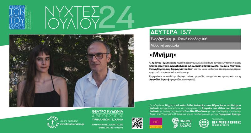 Ο Χρήστος Γαρμπιδάκης παρουσιάζει έναν κύκλο δεκαπέντε συνθέσεών του σε ποίηση Ελένης Μαρινάκη, Λεωνίδα Κακάρογλου, Κώστα Κουτσουρέλη, Γιώργου Κτιστάκη, Γιάννη Καρτεράκη, Ειρήνης Λαγουδάκη και του ιδίου, καθώς και τέσσερα ορχηστρικά έργα από τα προσωπικά του άλμπουμ.