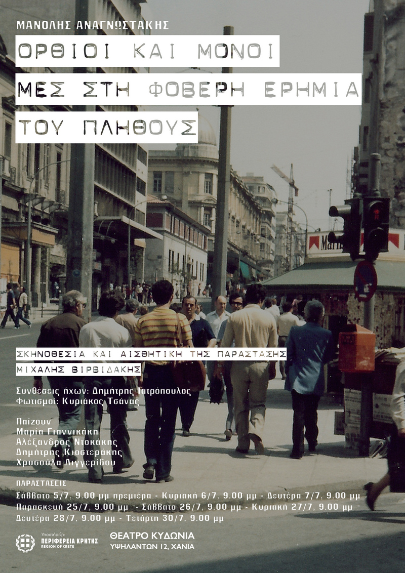 H Εταιρεία Θεάτρου ΜΝΗΜΗ ετοιμάζεται να παρουσιάσει μέσα στο πλαίσιο των εκδηλώσεων ΝΥΧΤΕΣ ΙΟΥΛΙΟΥ 2025, στον ΑΙΘΡΙΟ ΧΩΡΟ του ΘΕΑΤΡΟΥ ΚΥΔΩΝΙΑ, μια θεατρική παράσταση βασισμένη στην ποίηση, στα κείμενα και στα μελοποιημένα τραγούδια του σημαντικότερου ίσως εκπροσώπου της μεταπολεμικής γενιάς ποιητών με τίτλο: