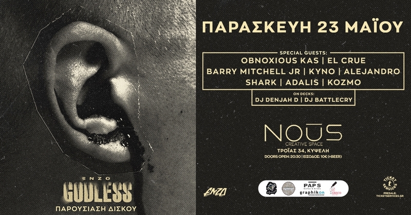 Ο ΕΝΖΟ παρουσιάζει τον νέο του δίσκο με τίτλο "GODLESS" στο NOŪS-Creative space.
