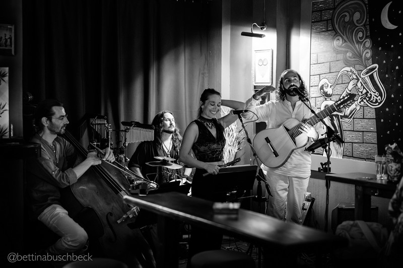 Lyrical voices, vocal close harmonies, unique covers, and new compositions create a brilliant and vibrant repertoire that spans from Latin America to Sweden and Japan, from the Mediterranean to the Celtic highlands. Nevertheless, Greek traditional songs remain the core of their music. As a natural evolution of this dense material, original creations come into existence.