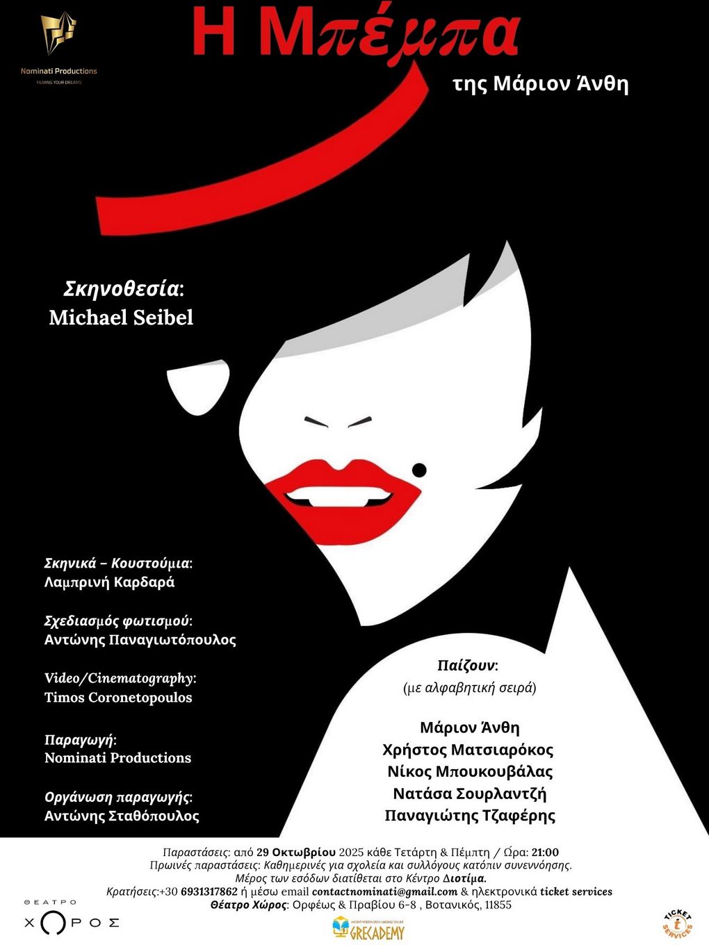 Προπώληση: Ticket Services (online: Η Μπέμπα, της Μάριον Άνθη: TicketServices.gr, τηλ. 210 7234567) ή στο +30 6972 548270 ή στο email director.nominati@gmail.com