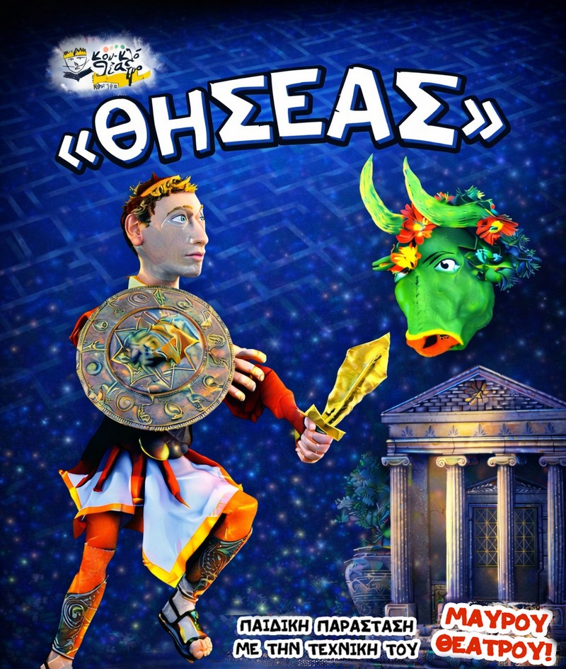 Οι θεατές θα έχουν την δυνατότητα να γνωρίσουν την ιστορία του Θησέα από κοντά. Τις περιπέτειες του ως την αρχαία Αθήνα και τους άθλους του. Θα δουν τον ήρωα να φτάνει ως την Κρήτη, να μάχεται με το Μινώταυρο! Θα δουν ζωντανά τα Ταυροκαθάψια και την Αριάδνη να δείχνει την έξοδο του λαβύρινθου με τον μίτο στον Θησέα. Μία αφήγηση παραμυθιού γεμάτη χρώματα και φαντασία.