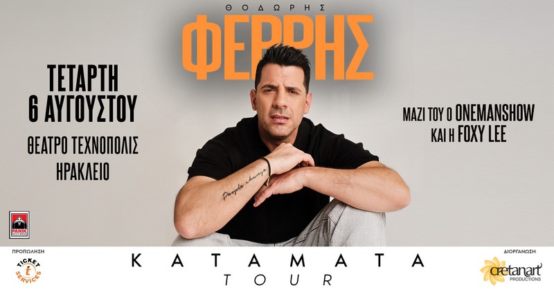 Μέσα από το «Κατάματα Tour», μία παραγωγή υψηλών προδιαγραφών, ο Θοδωρής Φέρρης θα χαρίσει συναρπαστικές μουσικές στιγμές με τις μεγάλες δισκογραφικές επιτυχίες του και τις γεμάτες συναίσθημα ερμηνείες του.