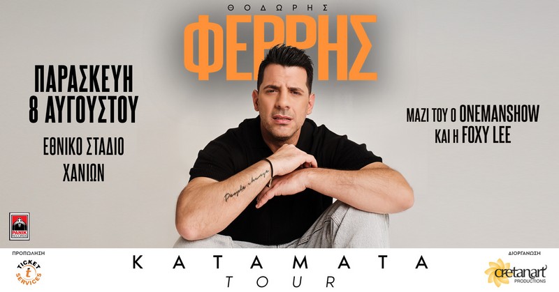 Μέσα από το «Κατάματα Tour», μία παραγωγή υψηλών προδιαγραφών, ο Θοδωρής Φέρρης θα χαρίσει συναρπαστικές μουσικές στιγμές με τις μεγάλες δισκογραφικές επιτυχίες του και τις γεμάτες συναίσθημα ερμηνείες του.