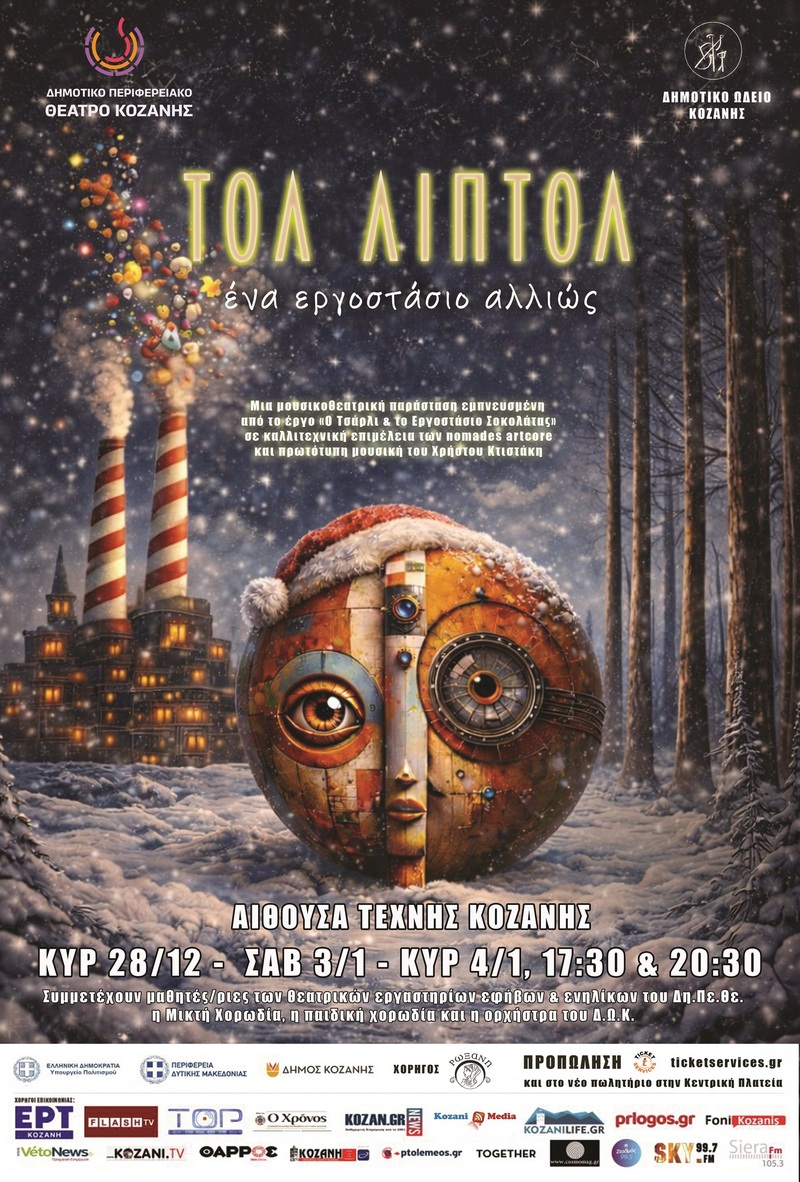 • Κυριακή 04 Ιανουαρίου 2026, 17:30 ΤΟΛ ΛΙΠΤΟΛ ΑΙΘΟΥΣΑ ΤΕΧΝΗΣ ΔΗΜΟΥ ΚΟΖΑΝΗΣ ΕΙΣΙΤΗΡΙΑ