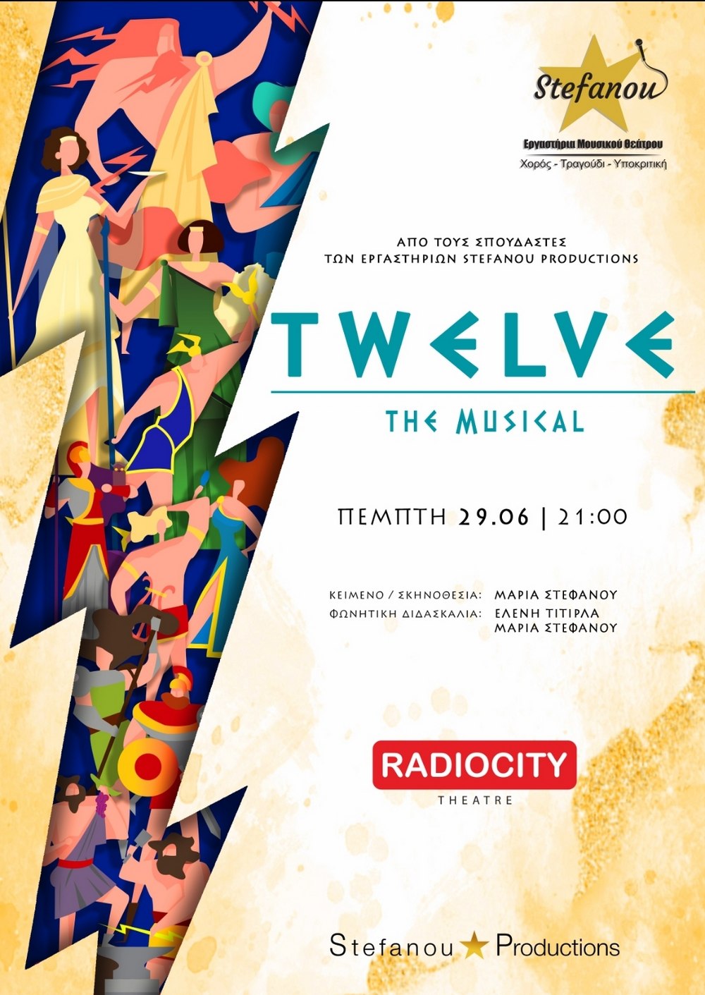 Τα εργαστήρια μουσικού θεάτρου Στεφάνου και τα τμήματα musical εφηβικό και ενηλίκων των εργαστηρίων μουσικού θεάτρου Στεφάνου, σας προσκαλούν στην μουσική παράσταση τους με τίτλο Twelve The Musical.