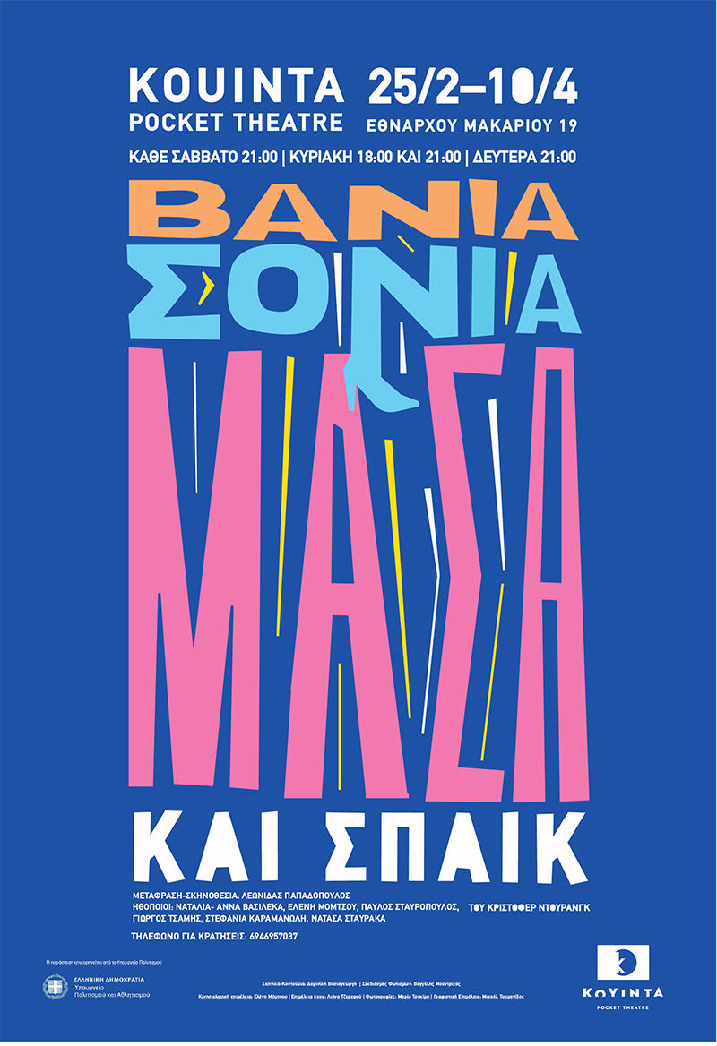 Η Kouinta Theatre Productions παρουσιάζει για πρώτη φορά στην Ελλάδα το βραβευμένο με Tony Award θεατρικό έργο του Κρίστοφερ Ντουράνγκ «Βάνια, Σόνια, Μάσα και Σπάικ», στο νέο θεατρικό χώρο Kouinta Pocket Theatre.