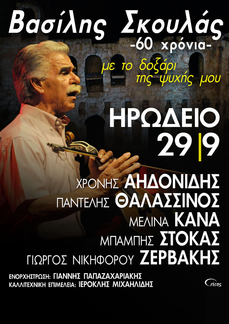 Ο ζωντανός θρύλος της Κρητικής μουσικής, ο Ανωγειανός Βασίλης Σκουλάς, γιορτάζει τα εξήντα χρόνια παρουσίας στο τραγούδι, με μια μεγάλη συναυλία κάτω από την Ακρόπολη, την Κυριακή 29 Σεπτεμβρίου.