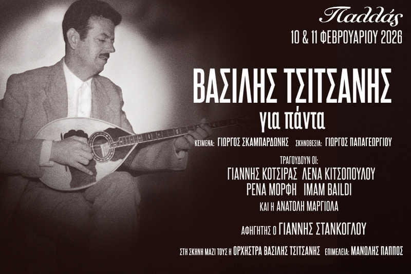 Με αφορμή τα 110 χρόνια από τη γέννησή του Βασίλη Τσιτσάνη, μια ξεχωριστή αφηγηματική συναυλία με σημαντικούς ερμηνευτές και ηθοποιούς επί σκηνής, θα ζωντανέψει στο Θέατρο Παλλάς το έργο και την εποχή του κορυφαίου Έλληνα δημιουργού, για δύο μόνο βραδιές.