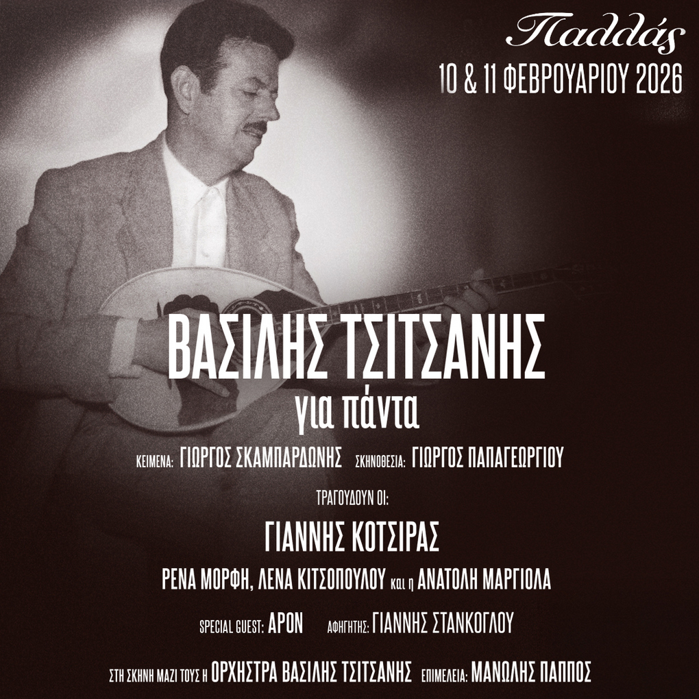 Με αφορμή τα 110 χρόνια από τη γέννησή του Βασίλη Τσιτσάνη, μια ξεχωριστή αφηγηματική συναυλία με σημαντικούς ερμηνευτές και ηθοποιούς επί σκηνής, θα ζωντανέψει στο Θέατρο Παλλάς το έργο και την εποχή του κορυφαίου Έλληνα δημιουργού, για δύο μόνο βραδιές.
