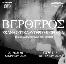 Ημέρες και ώρες παραστάσεων: 22, 23, 24, 25, 26, 30 Μαρτίου και 5, 6, 7, 8, 11, 12, 26, 27 Απριλίου στις 21:15