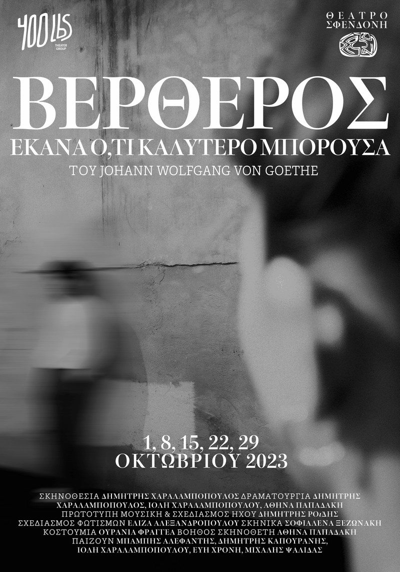 Βέρθερος ή έκανα ό,τι καλύτερο μπορούσα βασισμένο στο μυθιστόρημα του Johann Wolfgang von Goethe : "Τα πάθη του νεαρού Βέρθερου", σε μετάφραση της Στέλλας Νικολούδη