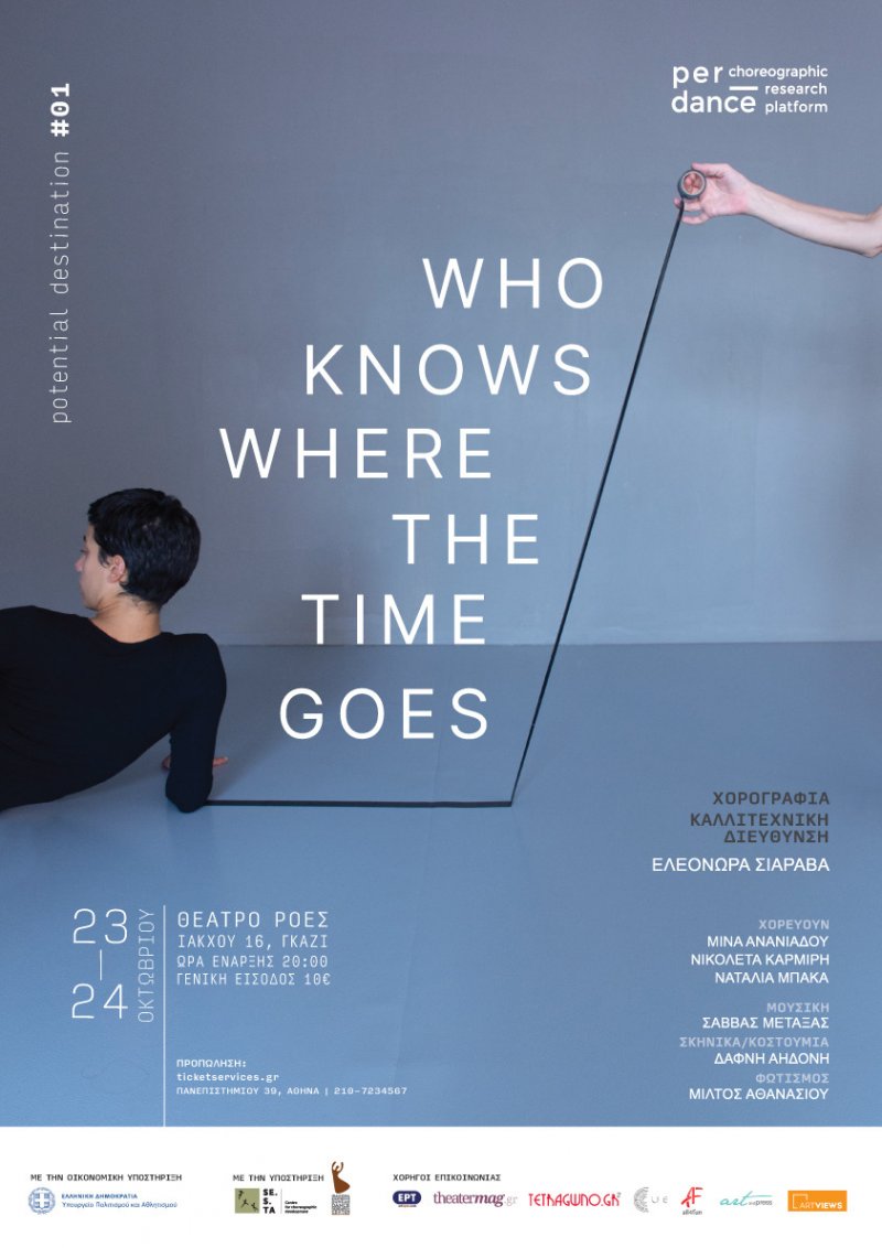Η Ελεονώρα Σιαράβα, χορογράφος που τα τελευταία χρόνια ζει και δραστηριοποιείται καλλιτεχνικά μεταξύ Ελλάδας και Γερμανίας, μετά από την πρεμιέρα της τελευταίας της δουλειάς The Body and the Other~ (2020) σε ένα από τα σημαντικότερα κέντρα χορού της Ευρώπης, το Tanzhaus NRW στο Düsseldorf στα πλαίσια του Temps D' Images Festival, παρουσιάζει στην Αθήνα και στη Θεσσαλονίκη το νέο της έργο με τίτλο Who knows where the time goes – potential destination #1